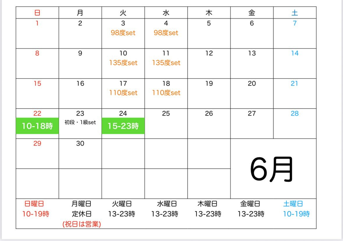 6月の営業カレンダーとなります🙋♂️よろしくお願いします😁
