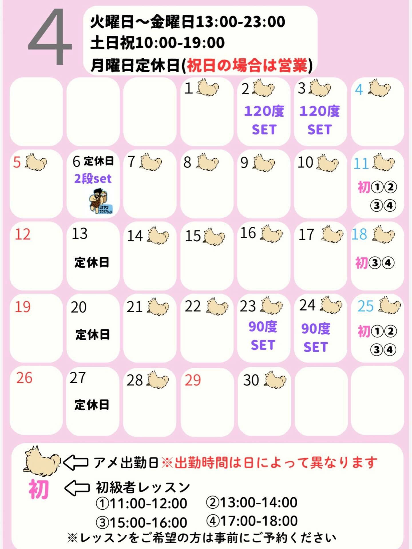 4月の営業カレンダーとなります🙋♂️今月もよろしくお願いし...